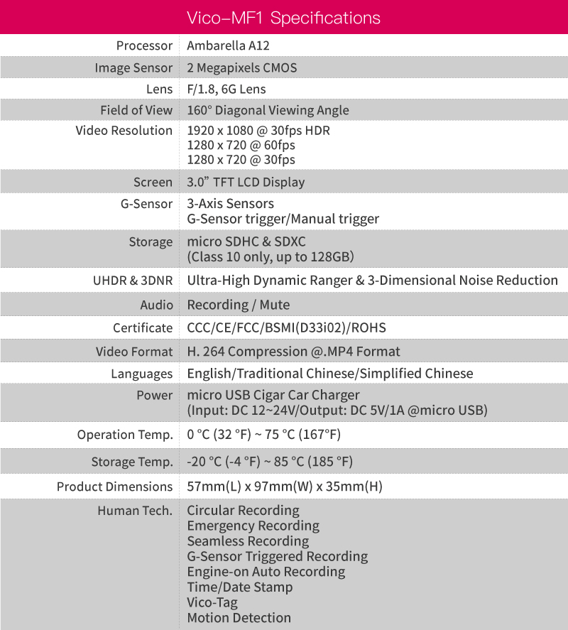 กล้องติดรถ vicovation MF1,กล้องติดรถ vico-MF1,กล้องติดรถยนต์ vico-MF1,vico-MF1,vicovation,กล้องติดรถ superhd,ambarella a12,ambarella a12 chipset,กล้องติดรถเลนส์กว้าง,กล้องติดรถไม่มีแบตเตอรี่,กล้องติดรถ capacitor,กล้องติดรถไต้หวัน,กล้อง